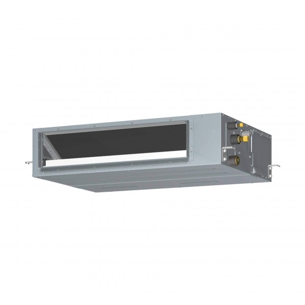 El Aire acondicionado Fujitsu ACY80-KA de la serie ECO KA es un sistema de conducto Inverter compacto y eficiente, ideal para espacios reducidos. Con una altura de solo 240 mm, se adapta perfectamente a techos bajos sin sacrificar rendimiento. Su diseño delgado y eficiente cuenta con una clasificación energética A+ en frío y A en calor, gracias al motor DC Inverter y su versatilidad de presión estática, que varía entre 30Pa y 150Pa, permitiendo ajustar la climatización según las necesidades del espacio.Además, incluye una serie de funciones avanzadas que mejoran el confort, como la programación personalizada, el cambio automático frío-calor, la velocidad automática del ventilador y un filtro de larga duración. La novedad de este modelo es la incorporación de una bomba de condensados y un tubo de drenaje, lo que facilita la instalación y optimiza el sistema de drenaje en áreas con espacio limitado bajo techo.