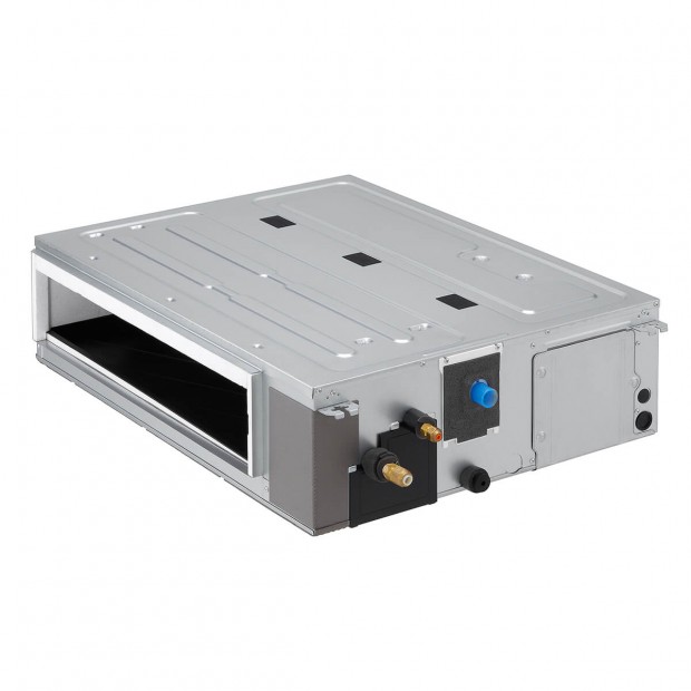 El aire acondicionado por conductos LG Confort de media y alta presión está diseñado para ofrecer climatización eficiente sin afectar a la estética del espacio, siendo una solución ideal para instalaciones ocultas. Permite la refrigeración y calefacción en múltiples estancias mediante sistemas de conductos, proporcionando una distribución uniforme del aire. Incorpora control de presión estática externa que facilita el ajuste del caudal de aire desde el control remoto, junto con motor que regula la velocidad del ventilador de forma independiente. Dispone de control mediante dos termistores que optimizan la temperatura interior, garantizando un ambiente confortable y estable en todo momento.