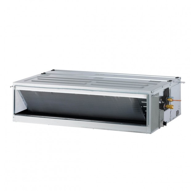 El aire acondicionado por conductos LG Confort de media y alta presión está diseñado para ofrecer climatización eficiente sin afectar a la estética del espacio, siendo una solución ideal para instalaciones ocultas. Permite la refrigeración y calefacción en múltiples estancias mediante sistemas de conductos, proporcionando una distribución uniforme del aire. Incorpora control de presión estática externa que facilita el ajuste del caudal de aire desde el control remoto, junto con motor que regula la velocidad del ventilador de forma independiente. Dispone de control mediante dos termistores que optimizan la temperatura interior, garantizando un ambiente confortable y estable en todo momento.