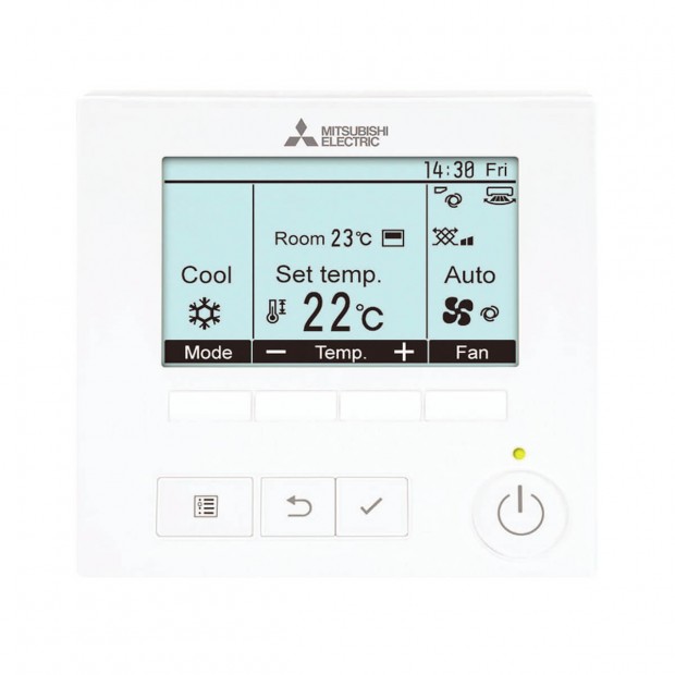 Control remoto DELUXE con programador semanal modelo PAR-40MAA. Dispone de pantalla retro iluminada, sonda de temperatura integrada, modo vigilia, retorno automático de consigna, Dual Set Point y configuración del horario de verano. Permite controlar 1 g./16 Uds.