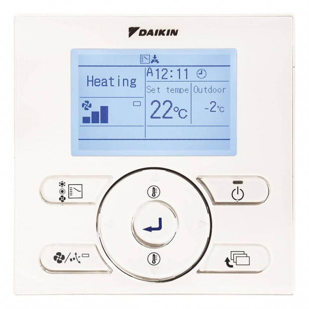 Control remoto cable para VAM-FB/VKM-GB. La pantalla se apaga, si no se utiliza el mando a distancia. Optimice su sistema de climatización mediante la activación de varias funciones de ahorro energético (límite de rango de temperatura, función de reajuste, temporizador de apagado,...). La función de modo silencioso se puede seleccionar para reducir el sonido de la unidad exterior. Compatible con varios idiomas: Inglés, alemán, español, holandés, español, italiano, portugués. Mando a distancia simplificado y fácil de utilizar con diseño contemporáneo.