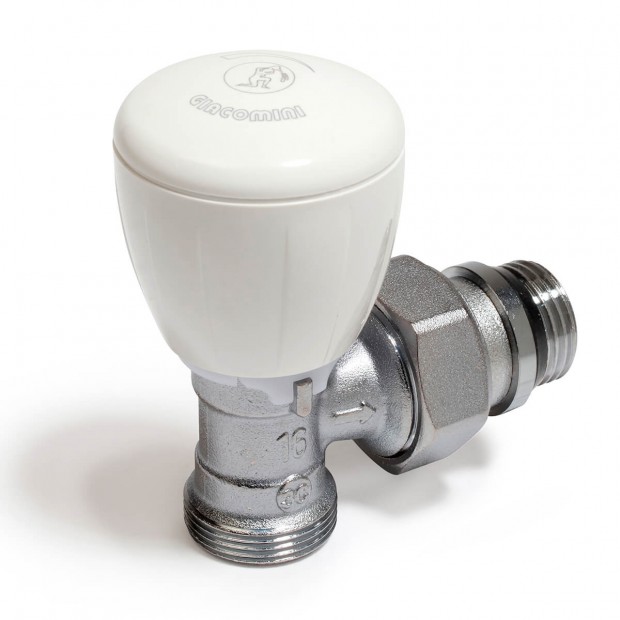 Válvula termostatizable a escuadra, de doble reglaje y con conexión para adaptador 1/2 Pulg. x16