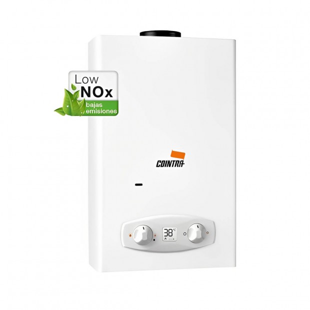 Más eficiente y más respetuoso con el medio ambiente, el calentador de agua Cointra CPA11 incorpora la tecnología Low NOx que reduce las emisiones contaminantes para conseguir una mayor eficiencia y respeto para el medio ambiente.\rGracias a su diseño compacto, podrás instalar fácilmente el calentador de agua Cointra CPA11 en cualquier espacio.\rNo te preocupes por la toma de corriente, el Cointra CPA11 tiene encendido mediante baterías y no necesita de un enchufe.\rRegula la potencia del calentador y la temperatura del agua, el calentador de agua Cointra permite ajustar los parámetros del agua a tus necesidades.