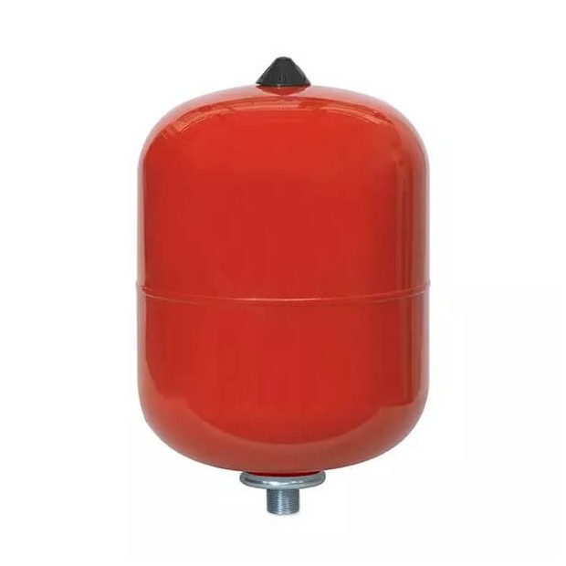 Vasos de expansión de membrana fija diseñados para sistemas cerrados de calefacción y refrigeración, con precarga de 1,5 bar y presión máxima de trabajo según ficha técnica. Funcionan con gas de aire y soportan temperaturas entre -10ºC y 100ºC. La membrana no es recambiable (según EN 13831, no apta para agua potable). Fabricados con conexión de agua cincada (de 5 a 35 CMF) y revestidos en pintura epoxi roja, cumplen con la Directiva 2014/68/UE.