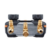 El analizador de refrigeración digital testo 550s con bloque de válvulas de 2 vías es el instrumento ideal para realizar rápidamente todas las mediciones necesarias en sistemas de climatización y bombas de calor. Los valores medidos se visualizan claramente en la gran pantalla gráfica, y gracias sus programas de medición prememorizados el analizador determina automáticamente muchos parámetros importantes del sistema como el recalentamiento, el subenfriamiento, la estanqueidad o el vacío. El analizador conecta fácilmente por Bluetooth con las testo Smart Probes para medir temperatura, humedad y presión para tener la máxima versatilidad en su uso. Mediante la App testo Smart se pueden elaborar informes digitales y enviar directamente desde el lugar de la medición. Además, en la App siempre están los refrigerantes disponibles, permite elaborar una lista con los favoritos y transferirla al analizador. Manteniendo la calidad y durabilidad de sus predecesores, este analizador es garantía de un gran rendimiento en cualquier situación.