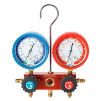 Este set de manómetros de 2 vías es ideal para instalación y mantenimiento de sistemas de aire acondicionado, refrigeración y bombas de calor. Compatible con refrigerantes R410A y R32, cuenta con manómetro de 80 mm con recubrimiento de goma para mayor protección.El cuerpo de válvulas está fabricado en aluminio de alta calidad con visor de líquido, y los mandos codificados por color facilitan un uso seguro y sin errores. Una herramienta robusta y precisa para técnicos profesionales.