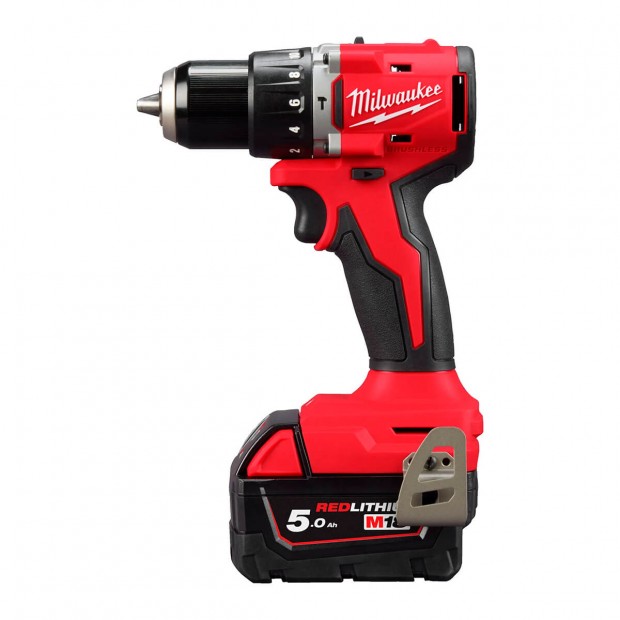 Taladro percutor compacto sin escobillas M18 con solo 145 mm de longitud, perfecto para espacios reducidos. Ofrece un par de apriete de 60,5 Nm y un portabrocas metálico de 13 mm para cambios rápidos y un agarre seguro. Incluye luz LED, indicador de carga y gancho metálico reversible. El motor sin escobillas, junto a la batería REDLITHIUM y la electrónica REDLINK, garantizan mayor potencia, autonomía y durabilidad. Compatible con todas las baterías M18 de MILWAUKEE. Velocidades variables de 0-550 y 0-1.700 rpm para perforaciones y fijaciones más rápidas.