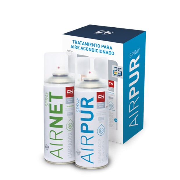 AIRNET AIRPUR SPRAY es un Kit de fácil aplicación que en solo 2 pasos desinfecta, limpia y elimina los malos olores del aire acondicionado. Elimina por contacto las acumulaciones de suciedad producidas por el paso del aire, microorganismos, bacterias, hongos, nicotina, polvo, etc. y mantiene el circuito libre de olores desagradables.