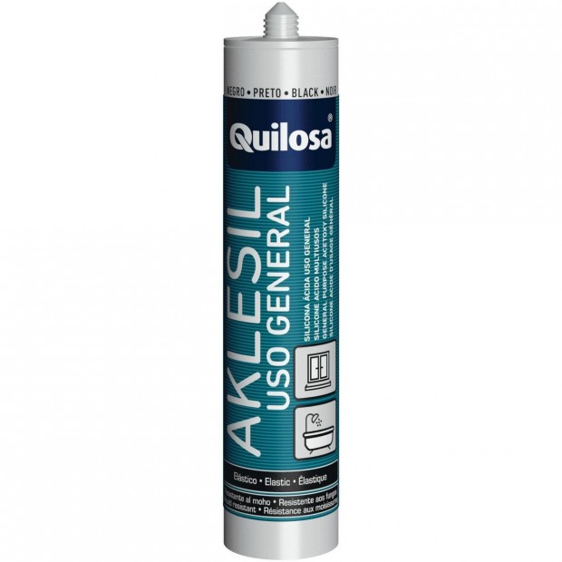 Sellador silicona AKLESIL blanco (cartucho 280ml). Sellados en acristalamientos, sellado vidrio-carpintería de aluminio. Sellado en baños y cocinas. Resistente a la intemperie y envejecimiento. Resistente al moho. Excelente adhesión a vidrio, aluminio, azulejos, cerámica, superficies vitrificadas y otras superficies no porosas.