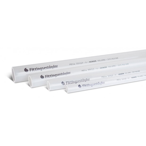 Los tubos de Polietileno Reticulado Fittings Estándar están fabricados por el método de Peróxido, están clasificados dentro del grupo denominado PEX-A. Esta tecnología consigue grados de reticulación superiores a otras técnicas, por lo que su resistencia a altas presiones y temperaturas y por tanto su calidad y durabilidad, son superiores a la mayoría de tubos PEX del mercado.\r– Poca pérdida de carga, debido a su superficie lisa y homogénea no se producen adherencias e incrustaciones.\r– Resistencia química y mecánica. No son afectadas por la erosión, abrasión ni por la corrosión, así como tampoco a la mayoría de ácidos y bases.\r– Resistencia a la temperatura. Diseñadas para trabajar constantemente a 90°C, soportando puntas de 110°C durante un determinado tiempo.\r– Larga duración y resistencia al desgaste. Están diseñadas para superar los 50 años de servicio, manteniendo sus propiedades mecánicas y físicas.\r– Calidad alimentaria. No altera las propiedades organolépticas del agua, garantizando que llega el agua hasta el usuario sin olor, color y sabor.\r– Tuberías flexibles y ligeras. El radio de curvatura es varias veces el diámetro exterior del tubo y pesa hasta siete veces menos que el cobre.\r– Memoria plástica. Puede ser deformado por expansión o aplastamiento pero recupera su forma original.\r– Insonorización. Estas tuberías absorben mejor los ruidos debido a su estructura molecular, flexibilidad y espesor de pared. Reduce los golpes de ariete.\r– Reducido coeficiente de conductividad térmica: 0,35 W/mK.\r– Cumplen con lo establecido en el Real Decreto 140/2003 Criterios Higiénicos-Sanitarios de la calidad del agua de consumo humano.\r– Comportamiento al fuego. Catalogado como tipo I clase B de elementos inflamables de la construcción.