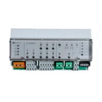 Este módulo permite el control por zonas de sistemas radiantes en etapas de frío/calor mediante actuadores de válvulas cableadas. Gestiona hasta 8 zonas y 20 actuadores, con comunicaciones vía bus CAN de la central. Incorpora 2 salidas de relé configurables para producción y demanda (12 A a 230 Vac), entrada analógica para medir temperatura con sonda, y pulsador de maniobra forzada. Se alimenta externamente (110/230 Vac) y se instala en carril DIN.