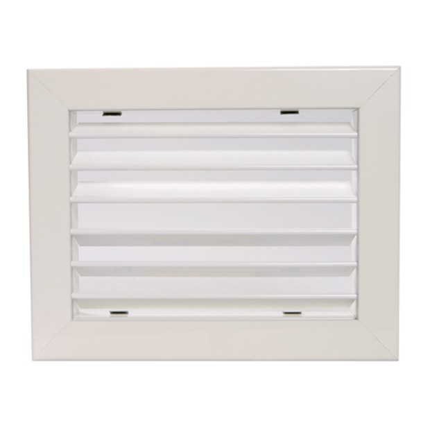 Rejilla de difusión de aluminio extrusionado con marco estándar de 26 mm y lamas horizontales móviles que permiten su regulación de forma individual, adaptando el alcance y la vena de aire a las necesidades requeridas.